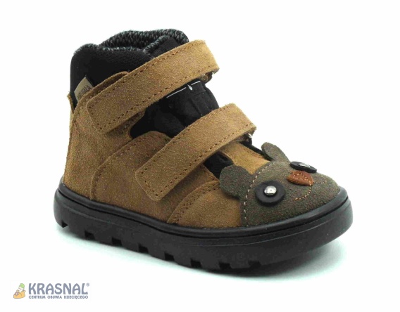 Buty MRUGAŁA w ciekawym kolorze - karmelowym, z misiem z przodu. Podobają się zarówno chłopcom jak i dziewczynkom.