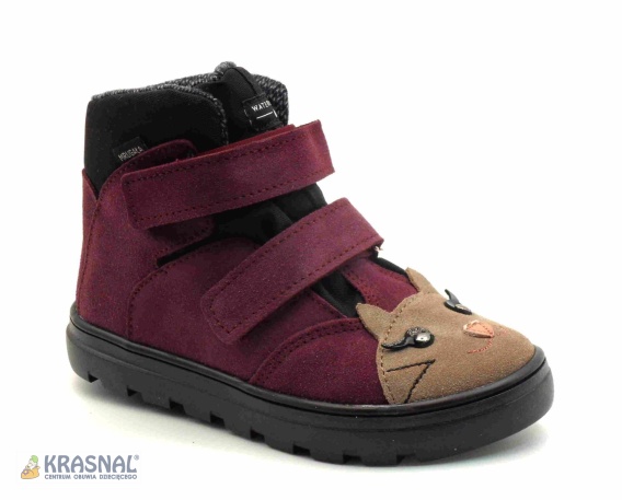 Buty MRUGAŁA w ślicznym bordowym kolorze ze słodkim koteczkiem z przodu. Podobają się bardzo dziewczynkom.