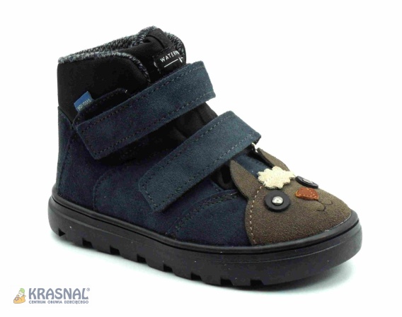 Buty MRUGAŁA w ciekawym kolorze - morskim, z alpaką z przodu. Podobają się zarówno chłopcom jak i dziewczynkom.